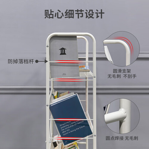 倾斜靠背设计,展现书本封面,吸引孩子拿起阅读。加深收纳设计,物品可平稳放置,镂空设计随意拿取。