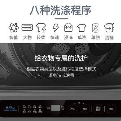 具备智能进水功能,自动匹配适宜的用水量,节能省水。拥有揉、搓等仿手洗技术,洗净污渍,不损伤面料。