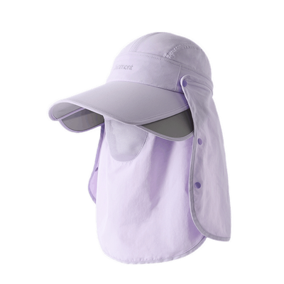 面部的透气循环系统,更具吸湿快干特性,脸部舒爽自在不闷热。可打开的扩展帽檐设计,实现全脸防护,带来更大的防晒面积。