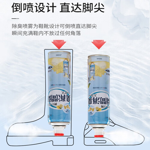 柠檬配方在使用时持续散发清香,告别鞋袜异味的尴尬;倒喷设计喷雾直达脚尖不放过任何角落,雾气细腻速干不湿鞋。