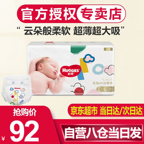 采用单向智能导流的设计,多方位瞬间吸收水分,穿戴没负重感。0.018MM超细纤维,给予宝宝屁股如云朵般柔软的呵护。