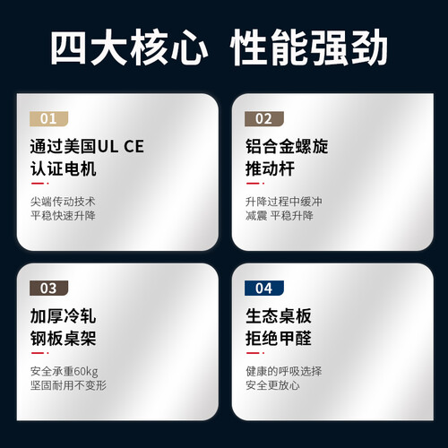 采用一键升降设计,结合久坐震动提醒,坐站交替减少腰酸背痛,告别久坐对身体带来的危害。桌板选用生态木板,拒绝甲醛更为健康。