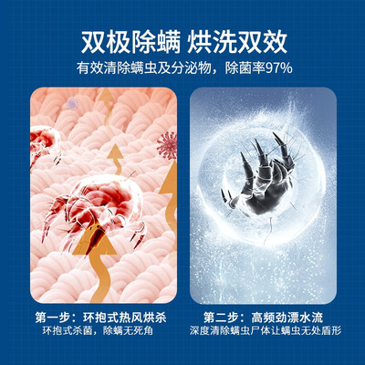 支持循环烘干功能,快速去除衣物水分,方便进行收纳。支持高温洁净技术,物理去除有害生物,让你安心使用。