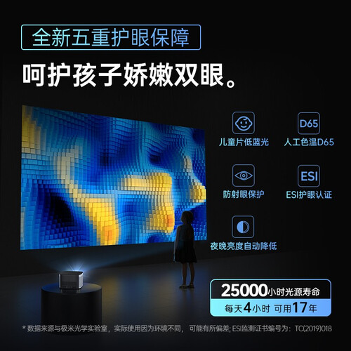 拥有强大算力支撑,识别精度更高,画面更流畅,观感更舒适。同时拥有画面感知算法,智能识别投影区障碍,找到更合适的投影面。