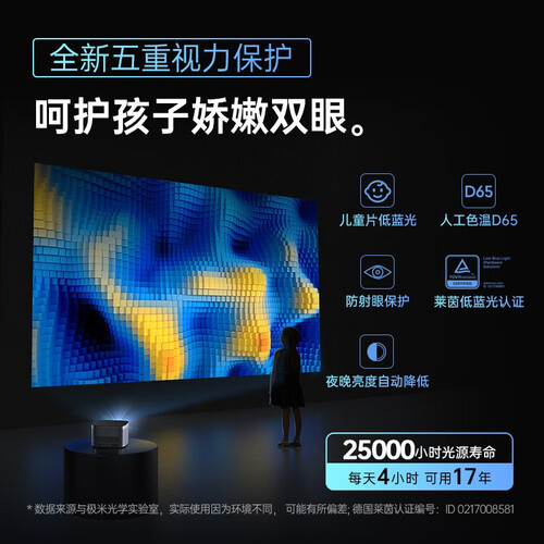 拥有智能光感,可智能感知环境光变化,自动调整到令人舒适的画面表现。可自动识别观看影片类型并进行色彩处理,还原影片色彩。