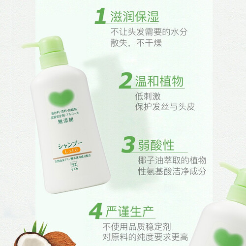 不添加色素、香料和防腐剂,配方更温和,可呵护头皮。添加植物性氨基酸成分,可温和洁净头皮和发根,秀发自然。