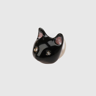 选用黑色的颜色外观,庄重高雅,拥有良好的百搭性。立体猫咪造型,尽显可爱萌趣。使用仿水晶石材质制作,硬度比较高,不含瑕疵。