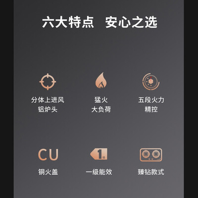 分体上进风的铝炉头设计可以让燃烧更充分,分体结构清洁更方便。面板表面红点防烫提醒减少烫伤,让用户使用安全。