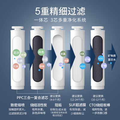 采用一体式物理净化,不含化学物质,品质更健康。同时拥有智能的换芯提醒,保障时刻拥有洁净的水质。