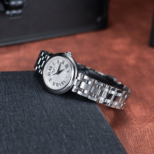 天梭时尚石英白盘防水女士腕表