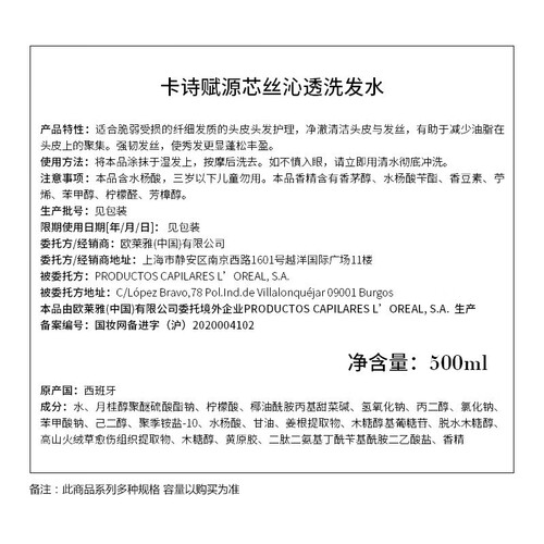 卡诗白金赋活洗发水