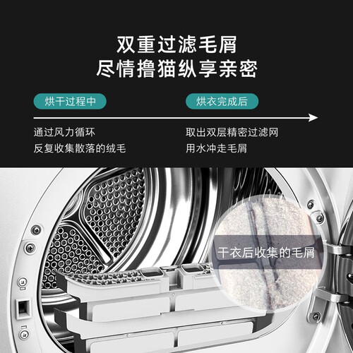 内置双重棉绒过滤器,收集棉绒与纤维,避免造成棉绒再次附着。搭载专利铜管热换器,提高烘干效率的同时更节能。