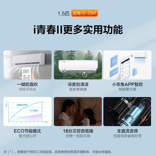 内设ECO模式,简单省心,既能保证舒适的体感,也能为你节省电费,畅快一整晚不担心。一键防直吹,避免冷风侵袭,使用舒心。
