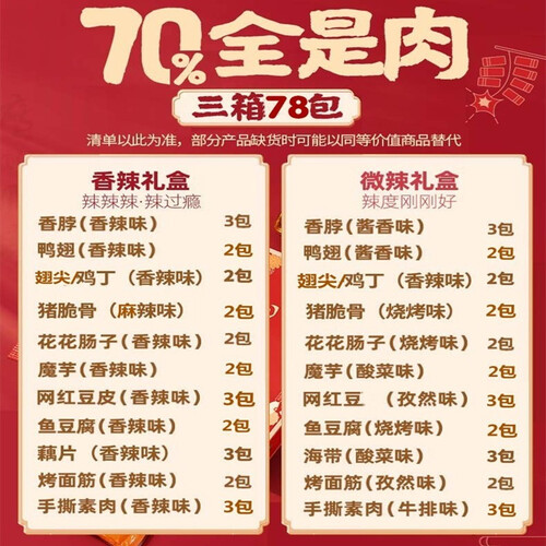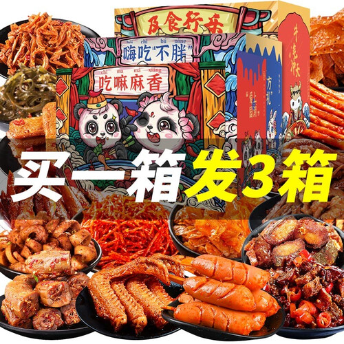 时尚大气的原创国潮风设计,零食大礼包可送给亲朋好友。追剧熬夜更方便食用,地道湘味更诱人,满足挑剔味蕾。