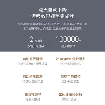 245-385mm低空瞬吸,离烟源更近,油烟可瞬间被吸走,防止油烟扑面。曲面导烟屏设计,高低双进风,防止油烟外溢。