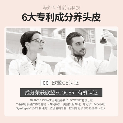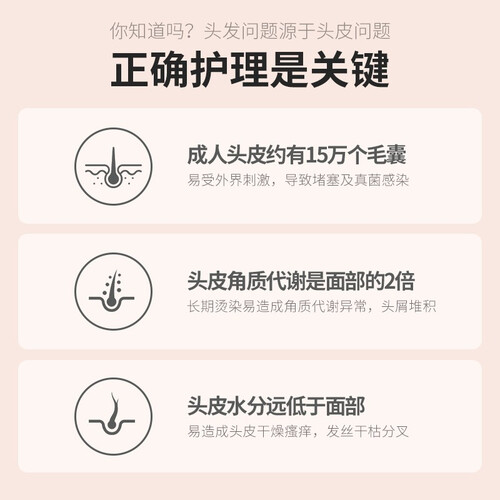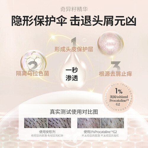 采用纯植物成分提取,深层去屑止痒,修护滋养头皮,含黄金级修护成分,修护头发屏障,维护头皮微环境。