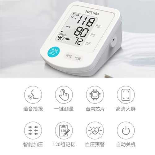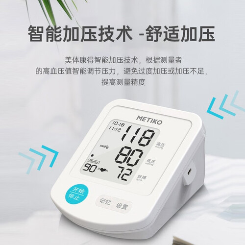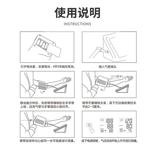 臂带升级设计,气囊可全覆盖手臂,测量不紧绷,结果更准确,血压偏高或者过低均有闪烁提醒,方便及时就医。