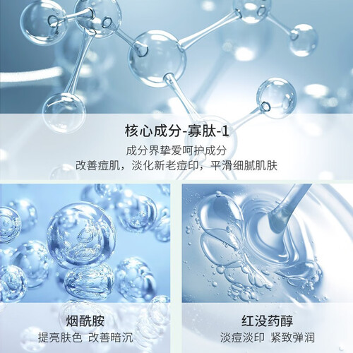 蕴含寡肽成分,能够细致肌肤修护痘印,改善油腻避免毛孔堵塞。烟酰胺等成分添加,提亮肤色,保持细腻紧致。