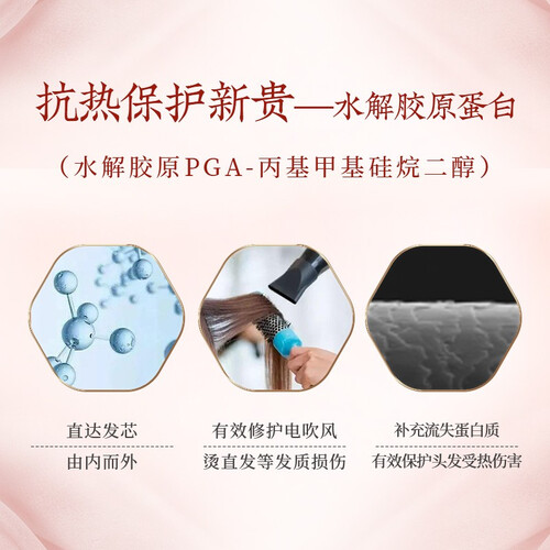 更有高级质感的鎏金质地,璀璨夺目,护发同时为发丝赋予光泽感。搭载抗热保护高能配方,由内而外充盈发芯,有效隔离热损伤。
