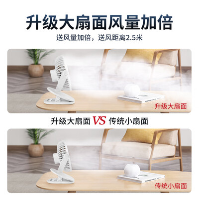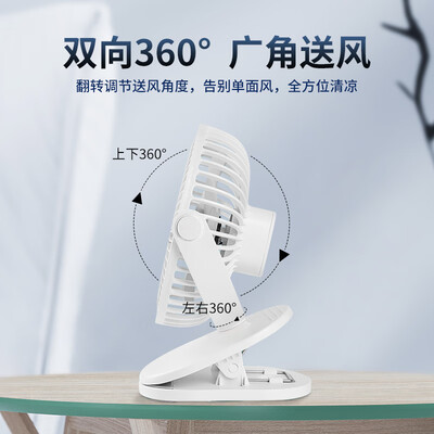一台多用,可立可夹还可挂,高弹力夹板耐用稳固,满足更多场景纳凉。双向360度广角送风,无需移动电扇,坐在哪里吹向哪里。