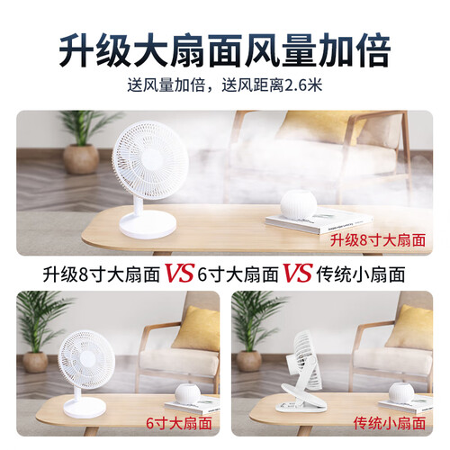 升级8寸大扇面,风力澎湃送风范围更广,快速驱赶闷热,舒享自然清爽。内置大容量电池,双重供电加持小身形,随身携带“清凉”。