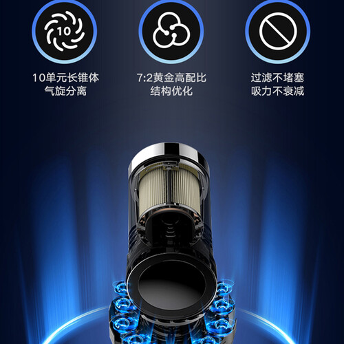 内置8节大容量电池组,至高续航70分钟,一次性解决全屋清扫需求。创新多锥气旋体环绕,过滤不堵塞,吸力不衰减。
