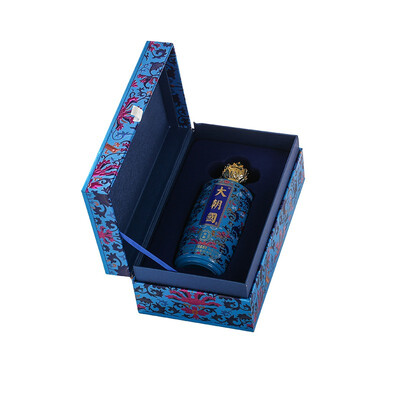 瓶身以典雅蓝色为基调,辅以精致国风花纹,彰显尊贵气韵;配以精美手提袋,无论是独自品鉴还是用作商务宴请,皆为上乘之选。