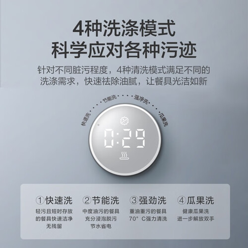 使用72℃高温水流进行冲刷,呵护健康。使用双重烘干体系,解决异味。含四大洗涤模式,满足多需求。