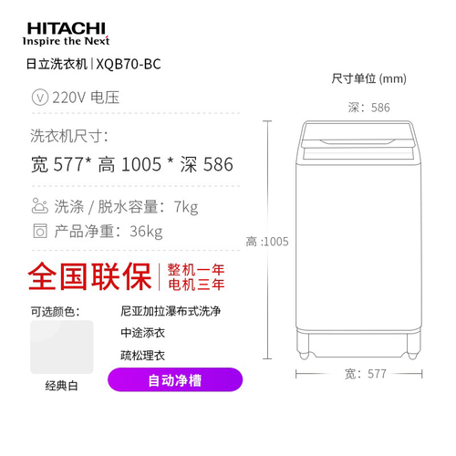 日立 全槽净水清洗波轮洗衣机