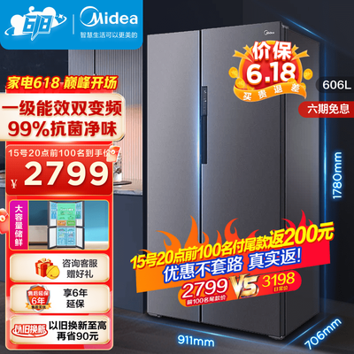 潜艇级净味,606L加大容量,低碳环保一天不到一度电,变频风箱守护食材鲜美抚平温度波动,稳控运行。