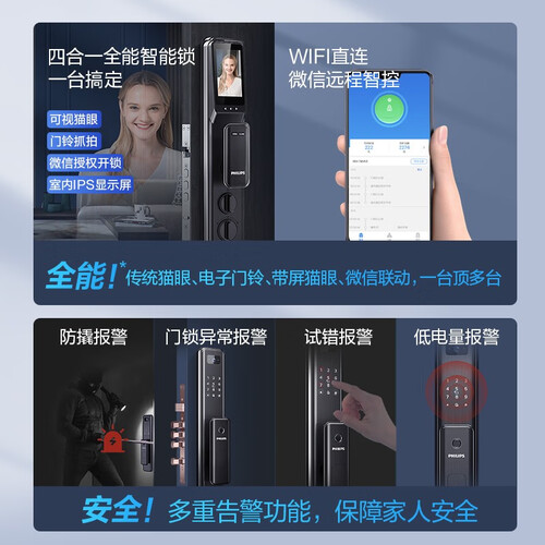 采用PIR传感器,识别灵敏随时查看门外情况,准确发送异常消息。多重报警功能,保护家人生活安全,并且实时提醒锁门。
