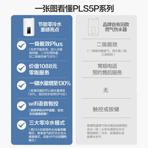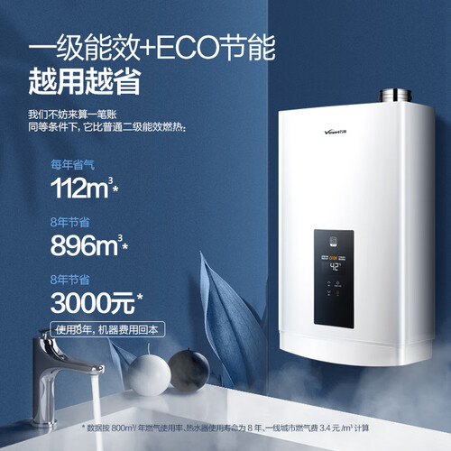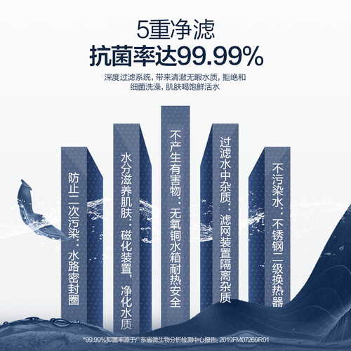 一级能效节能系统,冷凝换热器的加入,余热不会过多浪费,节能省气。具备5重的净滤系统,带来更清澈无瑕水质,沐浴亲肤健康洗。