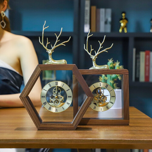 镂空金属机芯,彰显时尚造型。搭配黑胡桃木边框,木质紧实纹理自然细腻,具有森林气息,整体搭配美观得体。