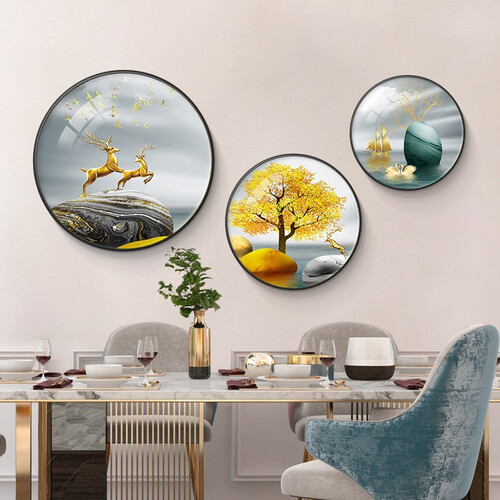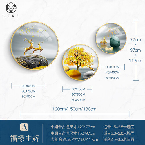 福禄生辉装饰画组合,色彩艳丽明亮,祝福家庭更有福气和财气。现代画风设计,更符合90后审美,时尚美观,图片清晰。