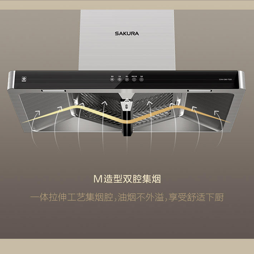 油烟机集烟腔采用一体拉伸工艺设计,M造型双腔集烟,确保油烟不外溢,排烟更彻底。燃气灶能产生5.0KW猛火,满足爆炒需求。