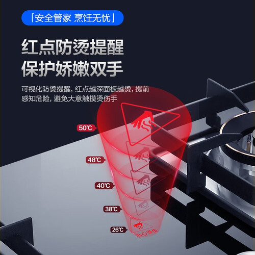 聚能环防风炉架的设计,火力爆炒食材喷香更美味。使用红点防烫可视化保护,随时提醒你温度过高注意防烫,避免烫伤皮肤。