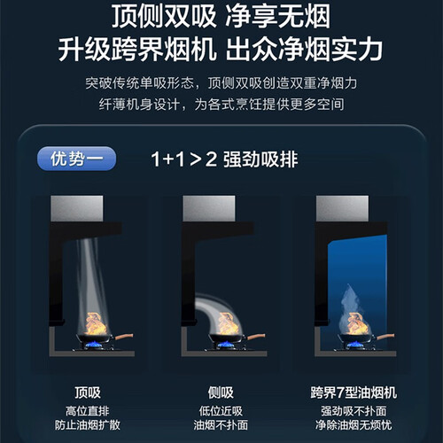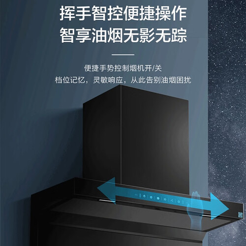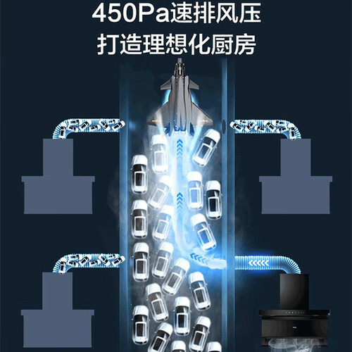 宽频火力可以调节,确保大火猛、中火匀、小火够稳。高性能电机带来21m³的大吸力,快速排走爆炒浓烟。切断油烟扩散路径。