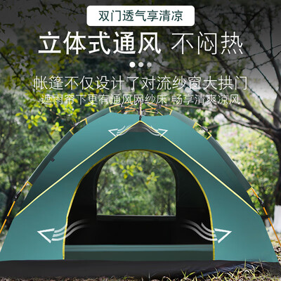 表面采用涤丝银胶布,可产生荷叶式拒水效果,轻松应对露水环境;双拉链设计,开合顺畅不易卡顿,进出方便。