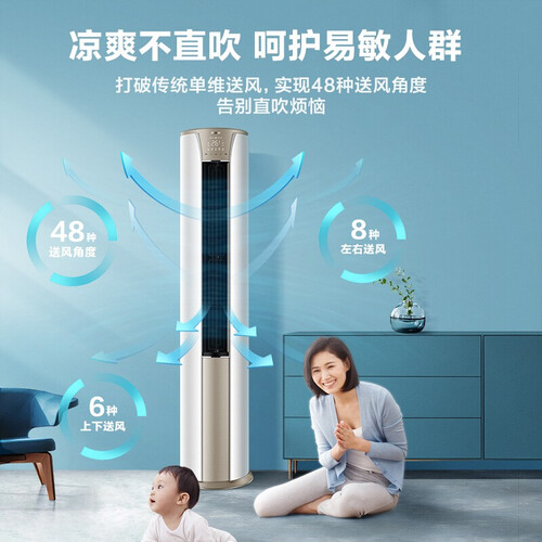 采用品牌压缩机,可提升制冷制热的速度,畅享舒适的温度。出风口进行升级,送风的面积更广,可覆盖的范围更大。
