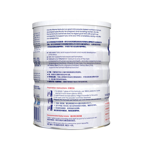 采用纯羊乳蛋白配方,更加亲和孕妈肠胃,吸收效果更出众。原装原罐直达中国,不经二次分装,全程可追溯,正品有保障。