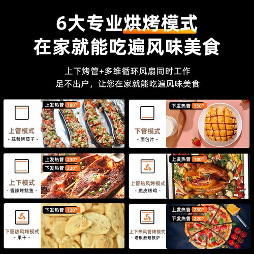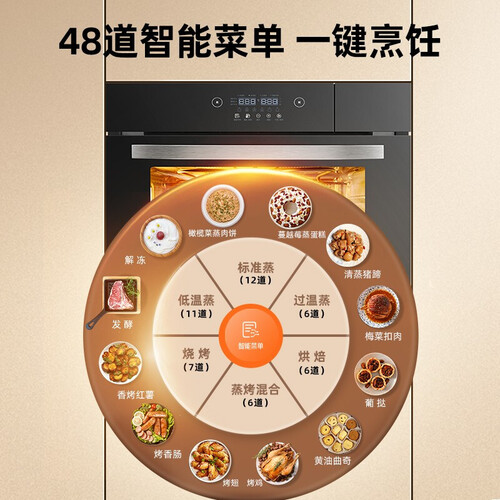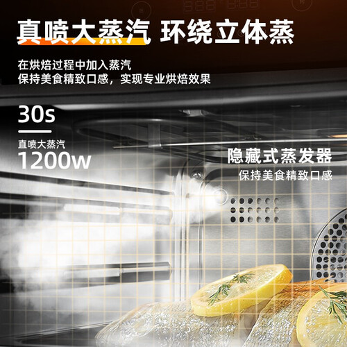 特有的多方位立体直喷蒸汽,令蒸汽360°均匀包裹食物,呈现鲜香口感。搭配5D热风烧烤技术,烘烤食物能够快速上色。