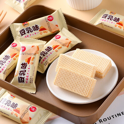这款豆乳风味的威化饼干,口感松脆不粘牙齿,带来食用上的满足感。晚上追剧或周末追剧,独立包装拆开就能食用,不用担心会回潮。