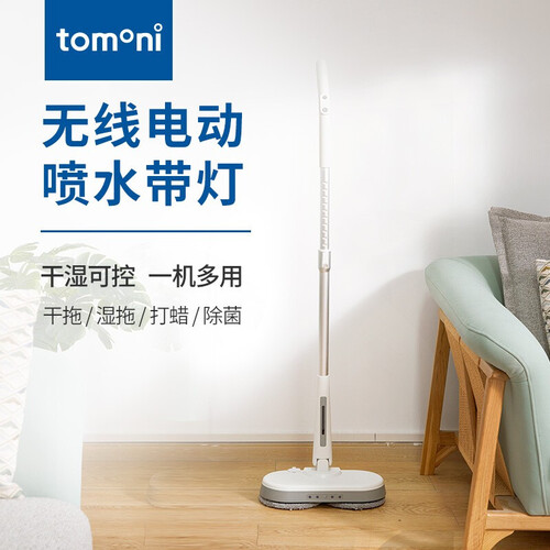 无线操控来去自如,前置LED灯可视化清洁,一键微水,扇形喷雾,即拖即干。集成水箱可加消毒液香精,集灵活便携于一体。