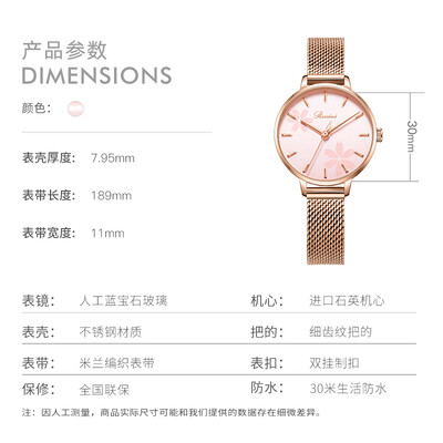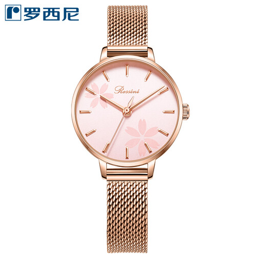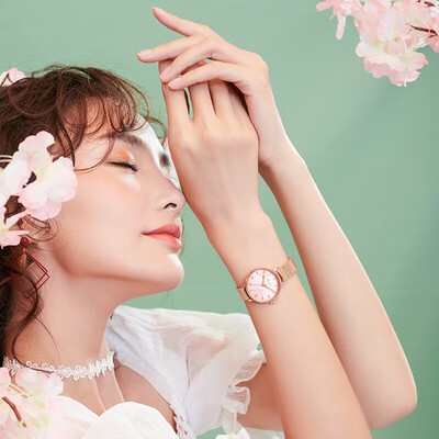 表盘采用错落有致的樱花暗纹设计,打破单调性,带来生动的美感。选用金属巧妙编织的米兰钢带,光泽莹亮,气质出众增添魅力。
