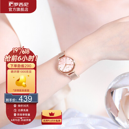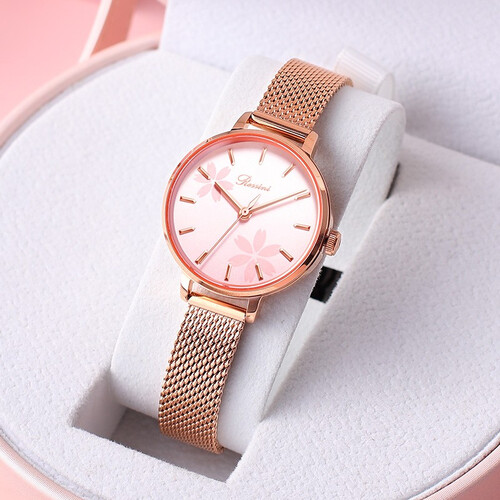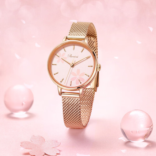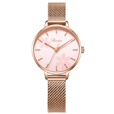 罗西尼 花漾盘面玫瑰金钢带手表