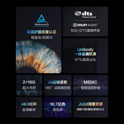 纤薄全面屏设计,摆脱传统边框的束缚,使观影更具沉浸感。自适应降噪技术,惊艳画质轻松拥有。