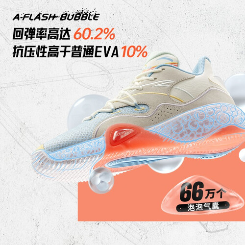 科技中底设计有丰富的泡泡气囊,脚感舒适,具有良好的回弹效果。鞋面采用多种材质交织而成,坚韧结实,无惧日常刮蹭。