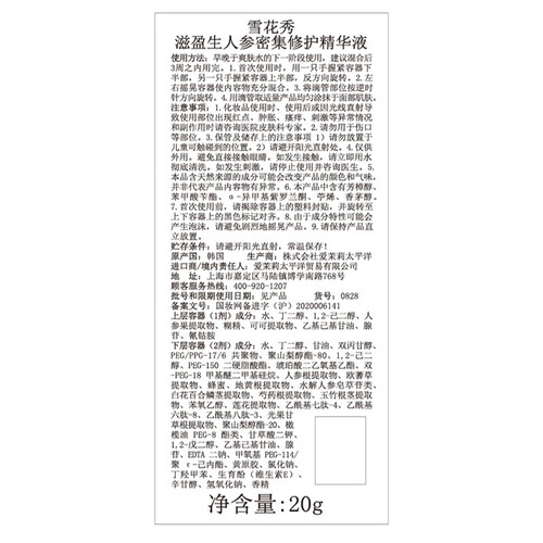 含有人参果精粹、黄金胜肽等成分,密集滋养肌肤,帮助修护肌肤微损伤,舒缓敏感泛红不适,肌肤更加紧致饱满,健康有光泽。