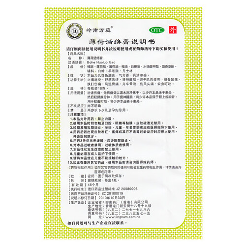 岭南万应 清凉浓郁薄荷活络膏