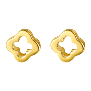 牧笛 镂空四叶草K金耳钉